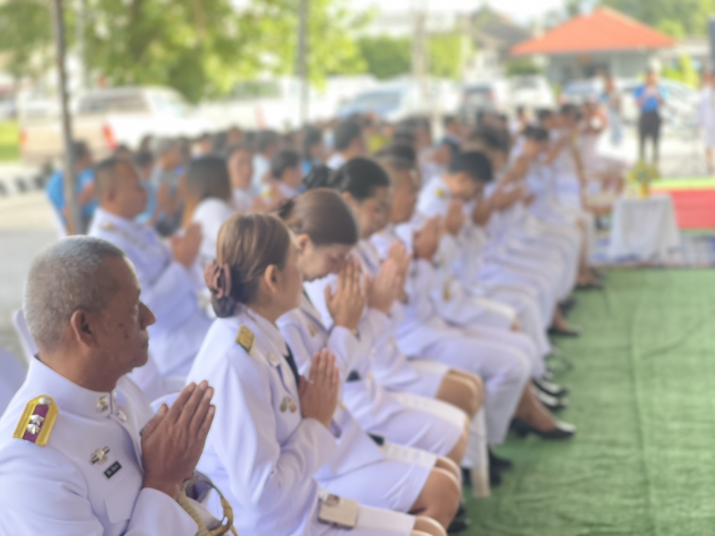 ร่วมพิธีเจริญพระพุทธมนต์และทำบุญตักบาตรถวายพระราชกุศล (ข้าวสาร,อาหารแห้ง)