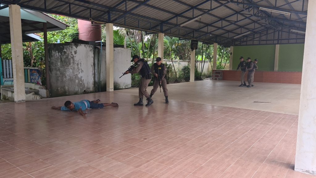 ✴️ ภายใต้การอำนวยการของ พล.ต.ต.สมชาย ซื่อต่อตระกูล ผบก.ภ.จว.นครศรีธรรมราช , พ.ต.อ.ประภาส ศรีสังข์จร ผกก.สภ.ลานสกา ได้สั่งการให้ พ.ต.ท.วินัย คงประพันธ์ รอง ผกก.ป.สภ.ลานสกา ทำการซักซ้อมแผนเผชิญเหตุคนร้ายกราดยิงในที่สาธารณะภายในโรงเรียนบ้านสันยูง ม.7 ต.ท่าดี อ.ลานสกา จว.นศ โดยได้รับความร่วมมือจากโรงเรียนบ้านสันยูง โรงพยาบาลลานสกา สมาคมกู้ภัยสว่างธรรมคีรี และภาคีเครือข่ายที่เกี่ยวข้อง เพื่อเป็นการแก้ไขปัญหาและเหตุการณ์ที่ไม่อาจคาดคิดได้ เหตุการณ์ทั่วไปปกติ