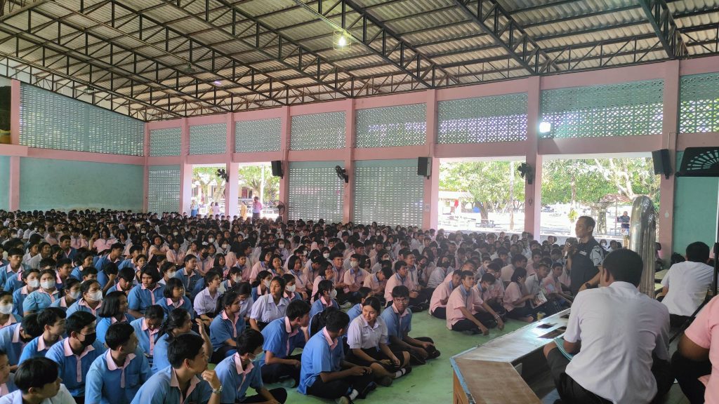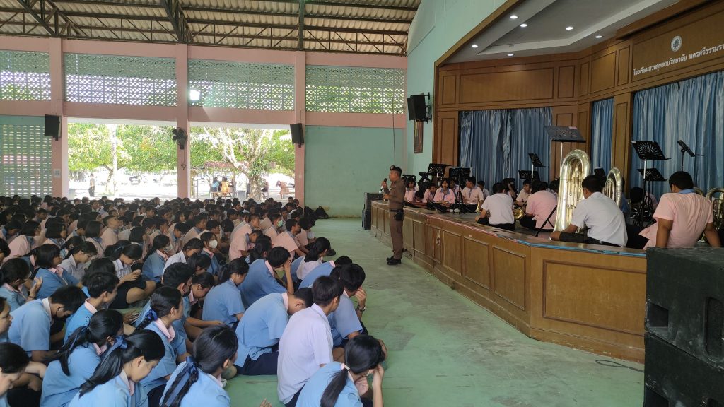 บรรยายให้ความรู้กฎจราจร ปลูกฝังการมีวินัยจราจร ประชาสัมพันธ์เพื่อป้องกันและลดอุบัติเหตุทางถนนในพื้นที่อำเภอลานสกา โดยเน้น 4 มาตราหลักดังนี้
