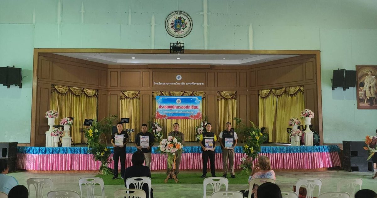 มอบหมายให้ พ.ต.ท.วรโชค วาจาสุจริต รอง ผกก.สส.สภ.ชะเมา รรท.รอง ผกก.ป.สภ.ลานสกา ,พ.ต.ต.สมปอง ศรีจันทร์ สว.สส.สภ.การะเกด ชรก.สวป.สภ.ลานสกา และเจ้าหน้าที่ตำรวจ สภ.ลานสกา ประชาสัมพันธ์จัดทำโครงการ “สวมหมวกนิรภัย ๑๐๐ เปอร์เซ็น” ณ อาคารเอนกประสงค์ โรงเรียนสวนกุหลาบวิทยาลัย นครศรีธรรมราช