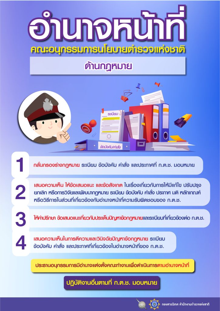 พ.ร.บ.ตำรวจแห่งชาติ พ.ศ.2565 เกี่ยวกับประกาศ ก.ต.ช. เรื่อง แต่งตั้งคณะอนุกรรมการนโยบายตำรวจแห่งชาติ จำนวน 4 ด้านคือ