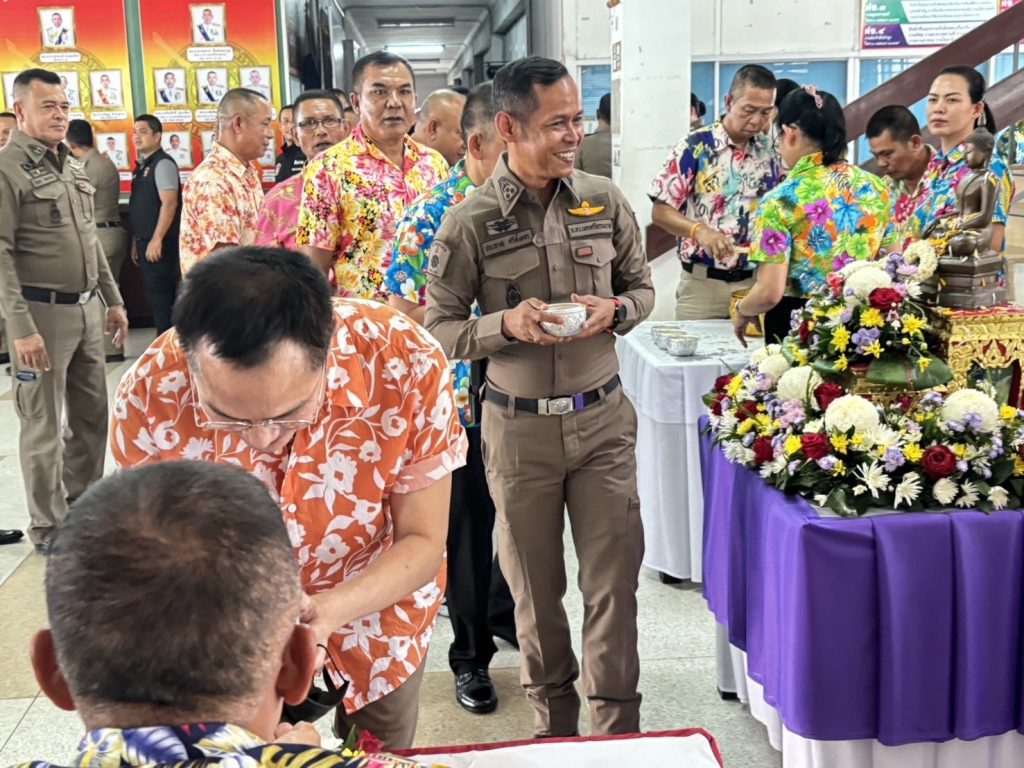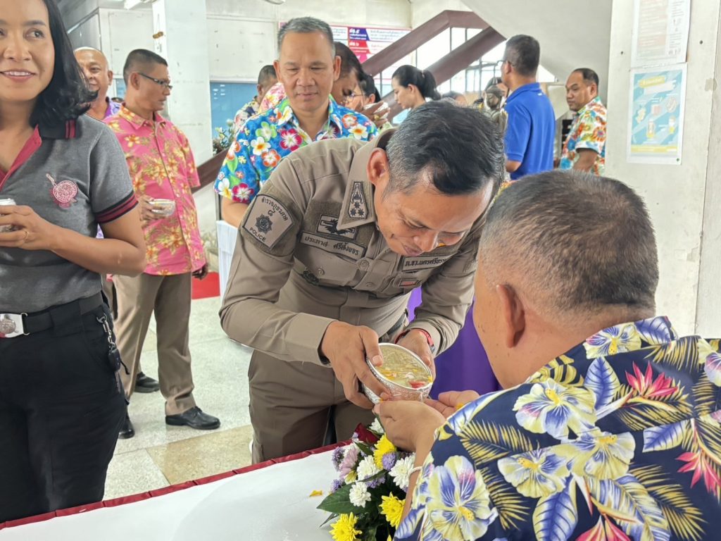 รดน้ำขอพร เนื่องในวันสงกรานต์ 11 เมษายน 2567 โดย admlanska / ข่าวภารกิจผู้บังคับบัญชา วันที่ 11 เมษายน 2567 เวลา 13.30 น. พ.ต.อ.ประภาส ศรีสังข์จร ผกก.สภ.ลานสกา พร้อมด้วยข้าราชการตำรวจ ร่วม รดน้ำขอพรผู้บังคับบัญชา ตามประเพณี เนื่องในวันสงกรานต์ ประจำปี 2567 ณ ตำรวจภูธรจังหวัดนครศรีธรรมราช FacebookFacebookXXLINELine