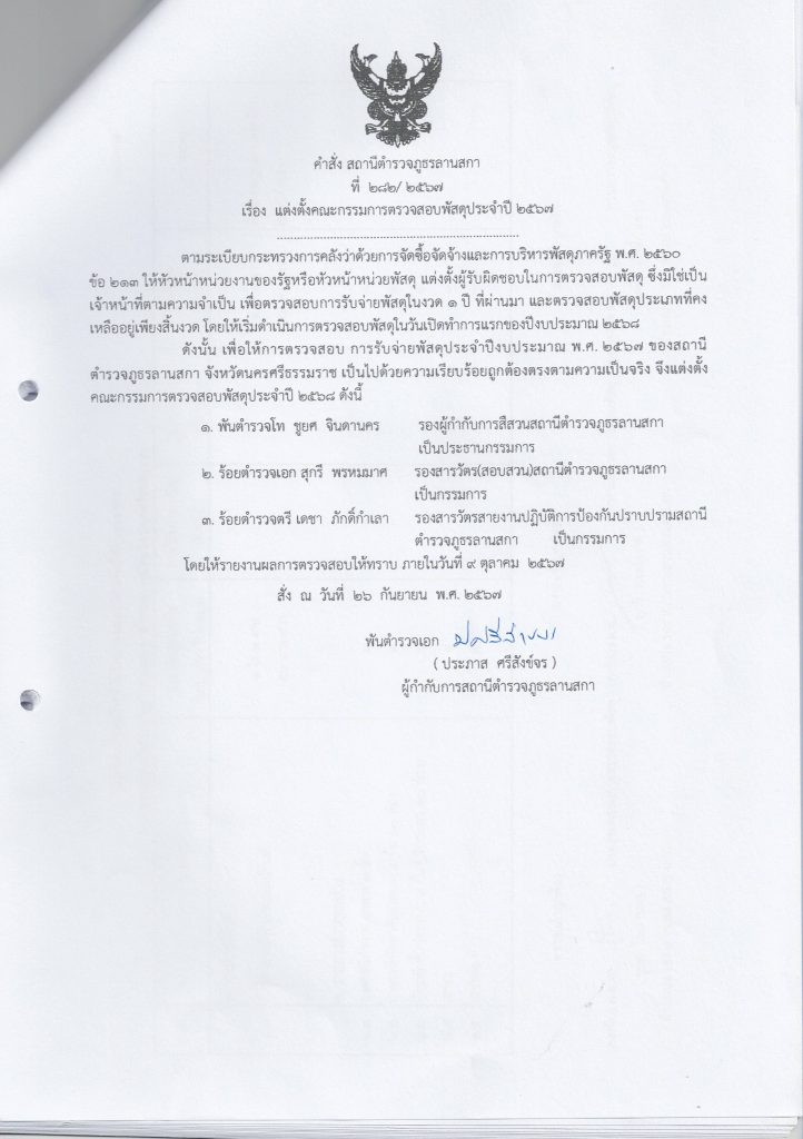 คำสั่งมอบหมายเจ้าหน้าที่ตำรวจตรวจสอบทรัพย์สินของราชการ