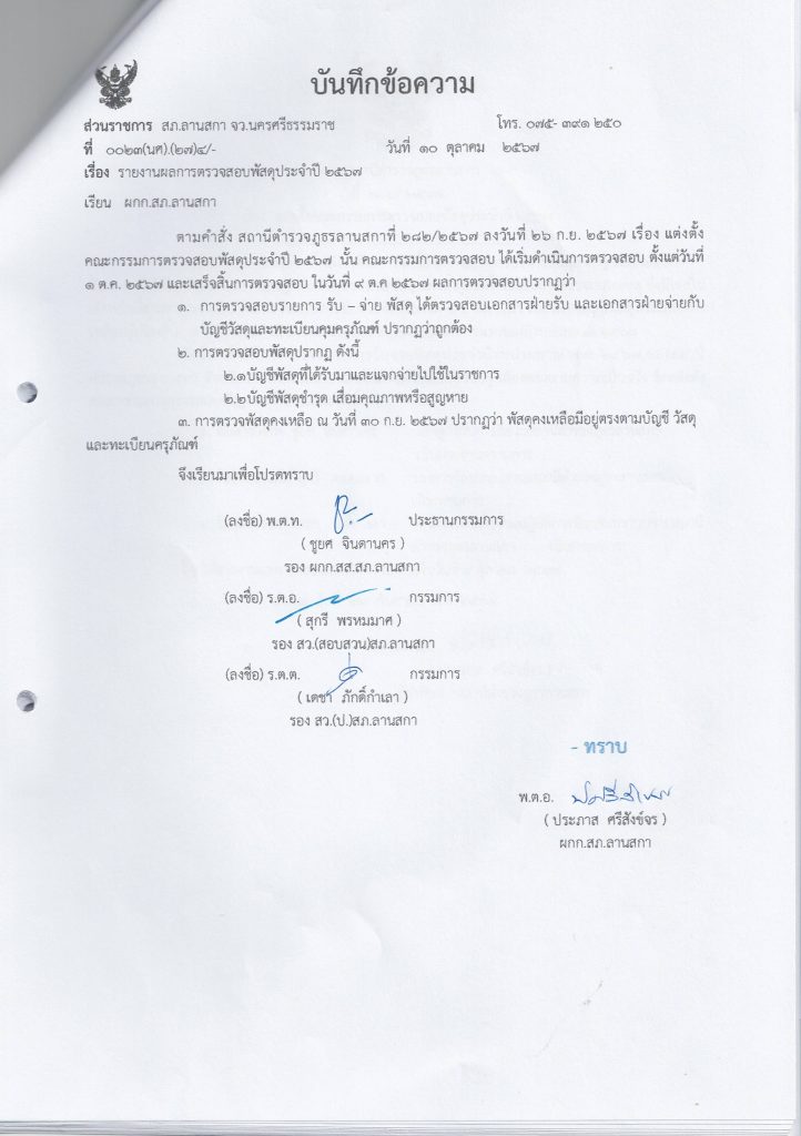 รายงานผลการปฏิบัติเกียวกับการจัดการทรัพย์สินของทางราชการ ของบริจาค การจัดเก็บของกลาง ประจำปีงบประมาณ พ.ศ.2568 ของสถานีตำรวจภูธรลานสกา จังหวัดนครศรีธรรมราช